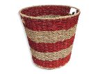 סלסלת עשב ים עגולה קטנה עם מסגרת מתכת – טבעי ואדום D35/26 H33