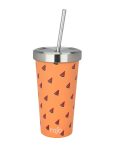 כוס נירוסטה כתומה הדפס אבטיחים עם קש 500 מ"ל מסדרת ROSO GRAB&GO